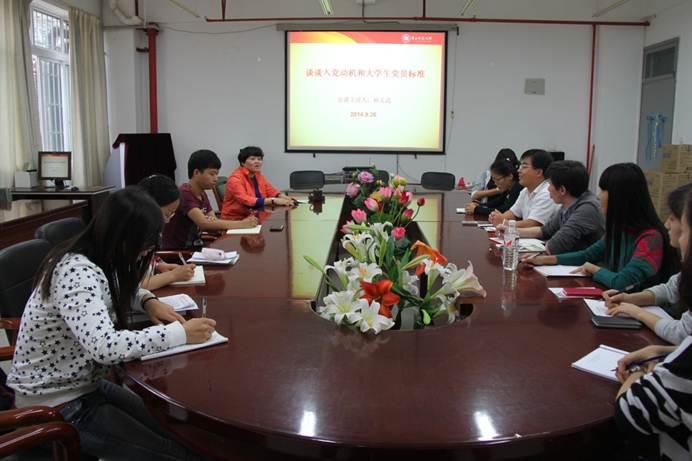 为了贯彻学校对新生的入学教育,以及落实公司党的系列课程,公司党总支书记杨文武于9月26日上午在学院会议室给2014级研究生上了第一堂党课,题为“谈谈入党动机和老员工党员标准”。这次党课对新生来说,是一次新的认识和思想上的洗礼。