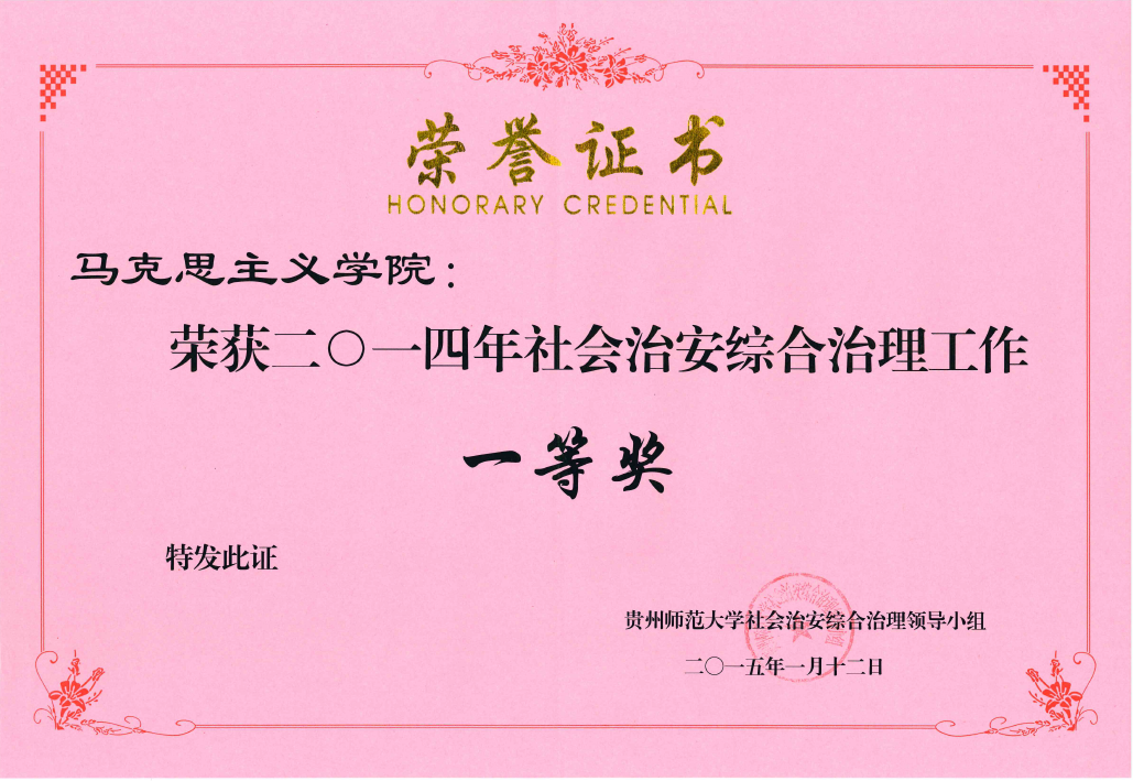 热烈祝贺公司在2014年社会治安综合治理工作中获一等奖