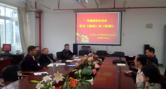 为进一步增进党员的组织纪律性和提高党员素质,增强基层党组织的凝聚力和战斗力,bevictor伟德纲要学科党支部4月8日在学院会议室召开了专题组织生活会,会议主题是“学习《准则》和《条例》”。