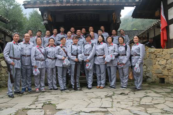 11月5日下午,老师们在参观完苟坝会议会址后,穿着红军服装,排着队唱着红歌走了四里多的“毛泽东小道”,体验当年毛泽东提着马灯,走过泥泞的小道,再一次挽救了红军的伟大历史。
