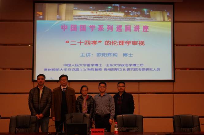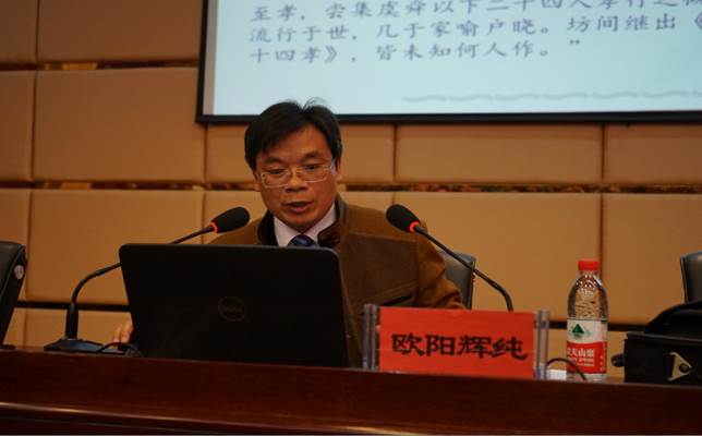 2016年11月16日,公司学者欧阳辉纯博士受到贵州省社科联的邀请,参加了由贵州省社科联举办的贵州省“社科名家上讲坛”第四期专题讲座活动,在贵州省经济学校作了一场题为《“二十四孝”的伦理学审视》的精彩学术报告。本次讲座由贵州省经济学校副董事长黎元波主持,贵州省社科联党组成员、副主席刘宗严和社科联科普部副部长冯新贵出席,贵州省经济学校全体教职工和员工代表(每班选2名),共计200多人聆听了本次讲座。讲座主要分为三个部分: