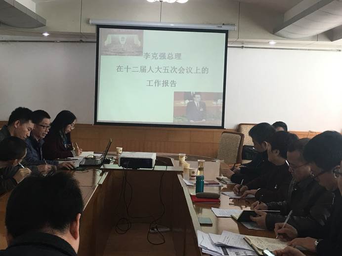 3月10日下午,bevictor伟德全体教师在田家炳教育书院三楼3会议室集体学习了李克强总理在十二届人大五次会议上所作《政府工作报告》和中共中央、国务院印发的《关于加强和改进新形势下高校思想政治工作的意见》。
