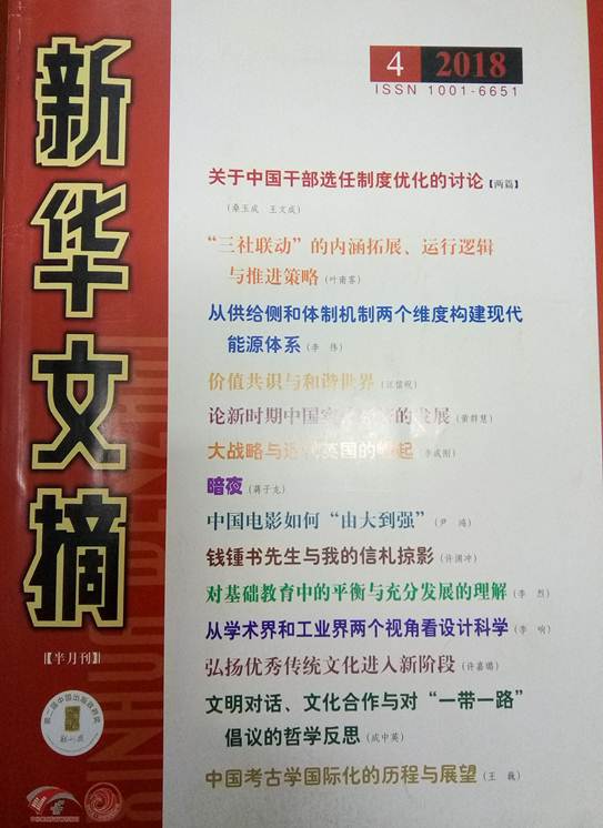 国家权威学术期刊《新华文摘》2018年第4期“论点摘编”摘登了公司刘五景博士发表于《人民论坛》(2017年第31期)的学术论文《文化自信呼唤文化自觉》。