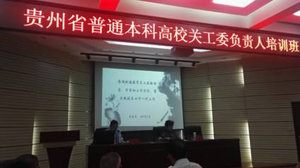 贵州省本科高校关工委负责人培训班在贵州师范学院举办。公司汪勇教授受教育厅关工委邀请于2018年8月26日上午9:30—11:30给全省普通高校关工委负责人作《学习习总书记5月2日在北大与师生座谈讲话》讲座。经过一个月的充分准备,汪勇教授于9月28日按照安排和要求在贵州师范学院贵州师范学院宁静楼继续教育学院报告厅给来自全省21所普通本科高校的关工委负责人共70余人作预定主题讲座。讲座不仅深入学习习总书记5月2 日与北大师生座谈时讲话的主要精神,同时还对习总书记在9月10日的全国教育工作会议上讲话精神作了深入阐述。汪勇教授备课充分,理论联系实际,深入浅出原汁原味地就习总书记的讲话精神作了深入的讲解,使全省普通本科高校关工委负责人对习总书记的两次重要讲话有了更加深入的了解和认识,进一步明确了工作的目标,取得了较好的成效。