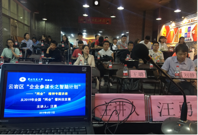 公司汪勇教授于2019年5月17日(星期五)上午9:30在bevictor伟德官网宝山校区思雅众创空间党员活动室给各社区从事科技工作的党员干部、辖区科技型企业党组织党员代表、有志创业的老员工、云岩区科学技术局党支部党员干部等60余人作主题为《从2019年全国“两会”看我国科技发展》的讲座。汪勇教授的讲座理论联系实际上并结合当前中美贸易战的情况等分别运用典型案例详实和数据先介绍2019年两会及其报告的主要内容,然后就十八大以来国家高度重视科技的创新和两会有关科技发展的具体举措等逐一展开。讲座既有政治高度,也有理论深度,同时还紧接地气,使听者对我国两会今年有关科技工作的相关内容及我国科技发展面临的境遇等有了较为清晰的了解和认识。